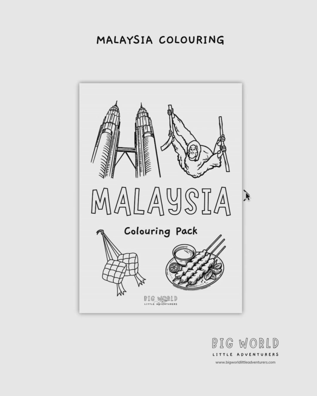 This beautifully designed colouring book introduces children to Malaysian culture, animals, landmarks, and daily life through fun, hand-drawn illustrations. From bustling night markets and tropical rainforests to traditional homes and iconic food stalls, each page invites discovery and creativity.
